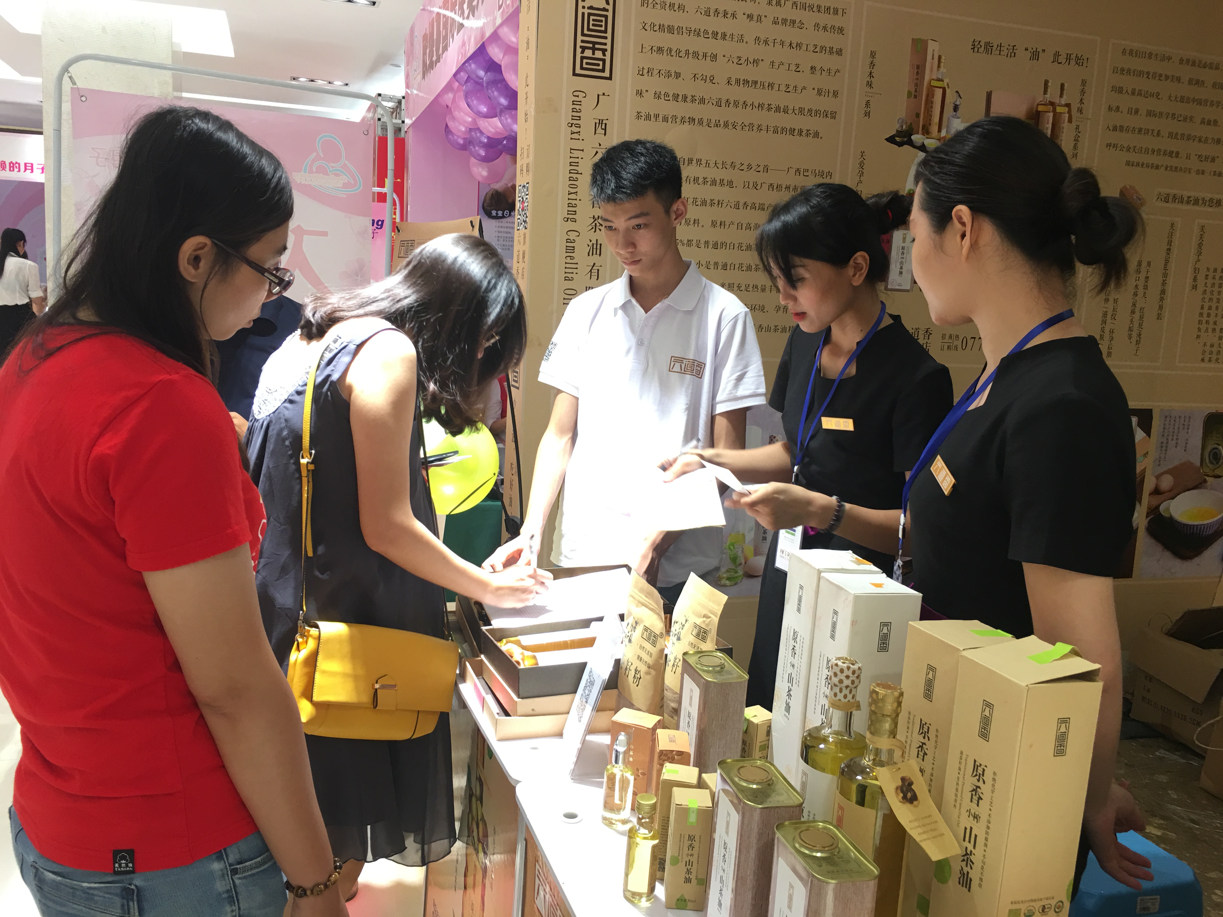 为期两天的广西第二届孕博会,6月3日在三祺广场拉开帷幕。开幕当天,超过1000名孕妈来到活动现场,六道香山茶油专为孕妇和婴儿设计的母婴系列产品颇受欢迎,其中50ml母婴外用茶油一天内售出600多瓶。